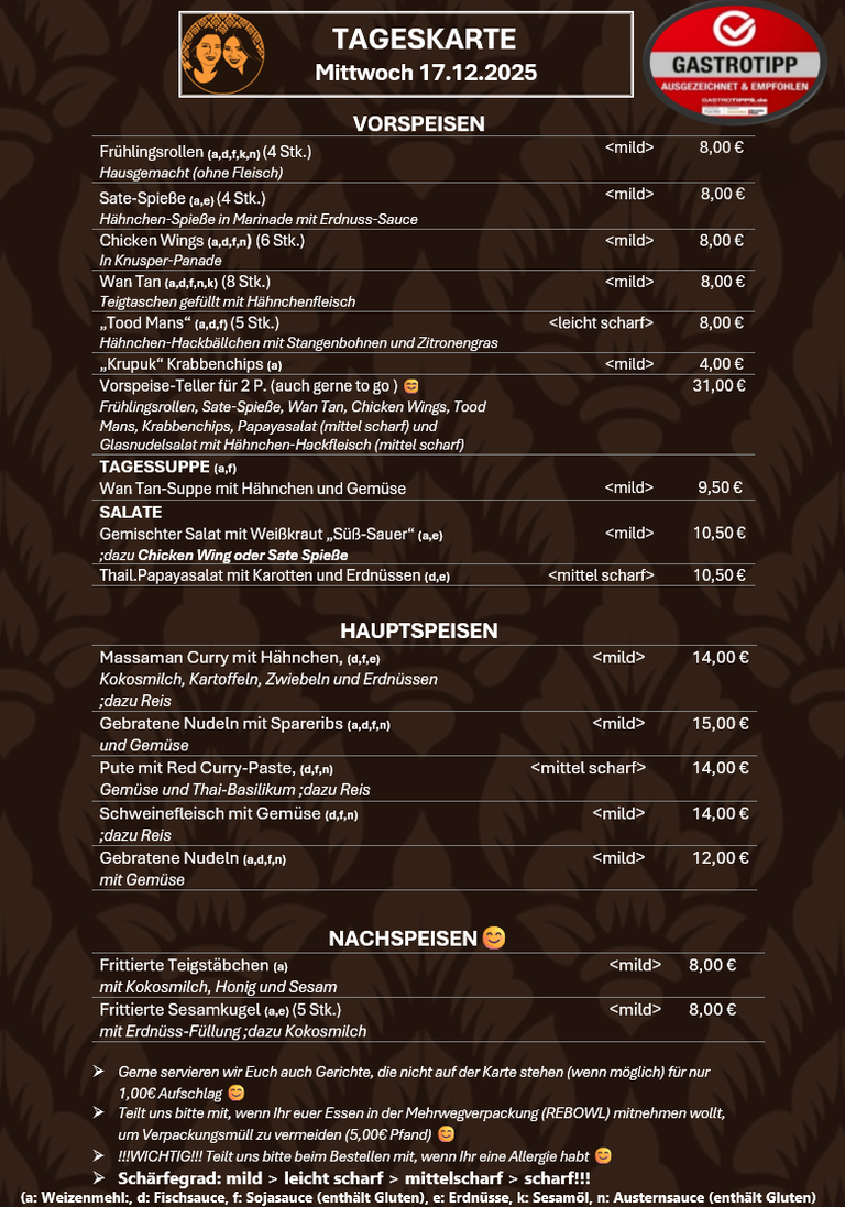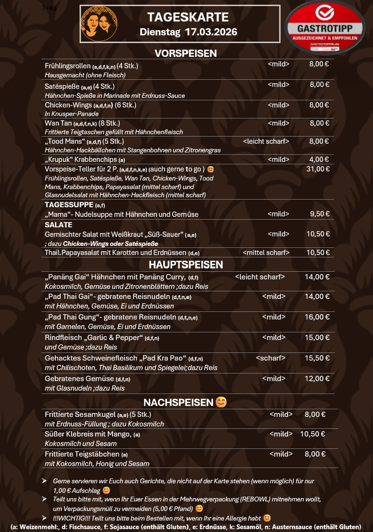 Vorbestellungen möglich ab 11:00 Uhr